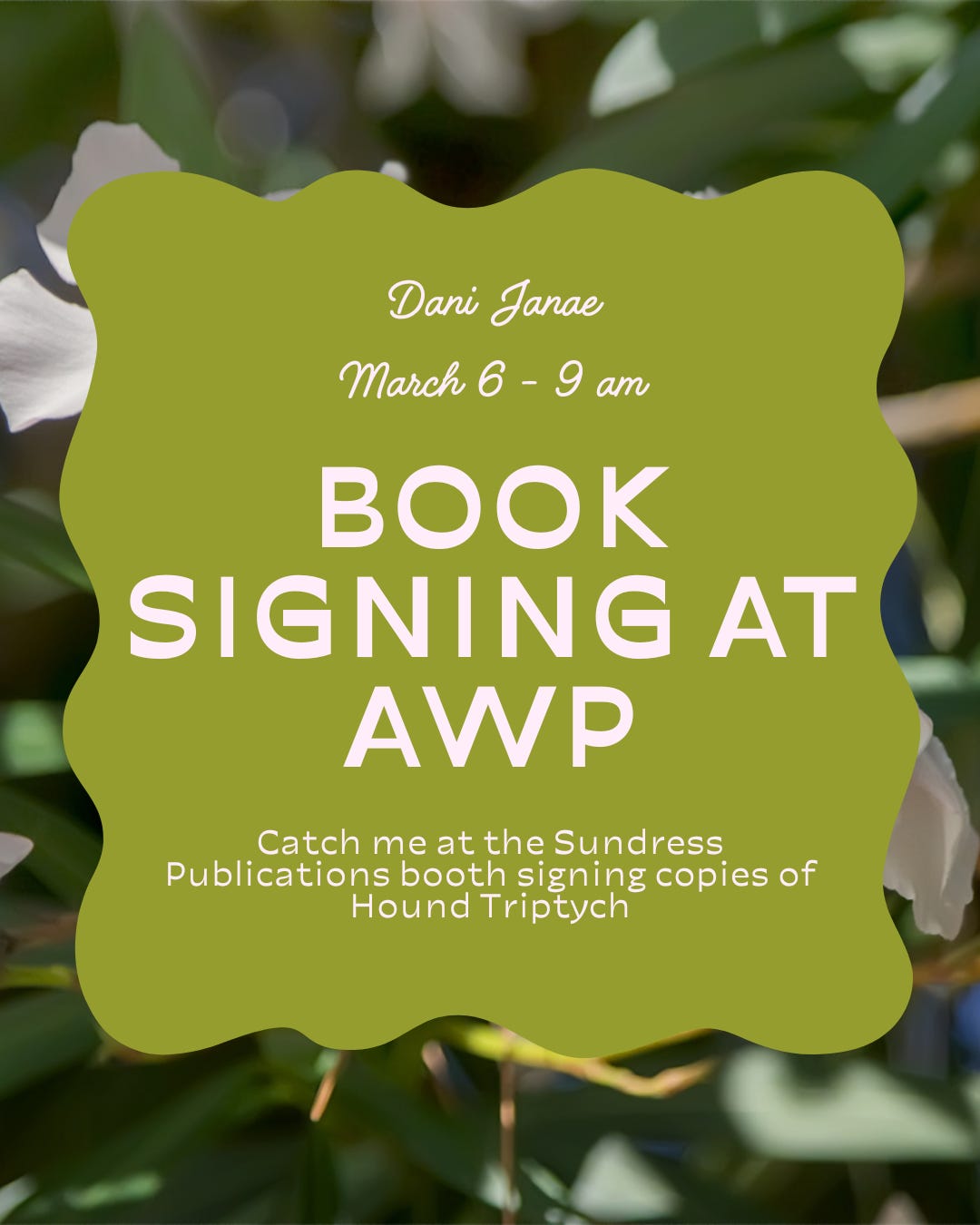 During AWP, I’ll be doing a book signing.